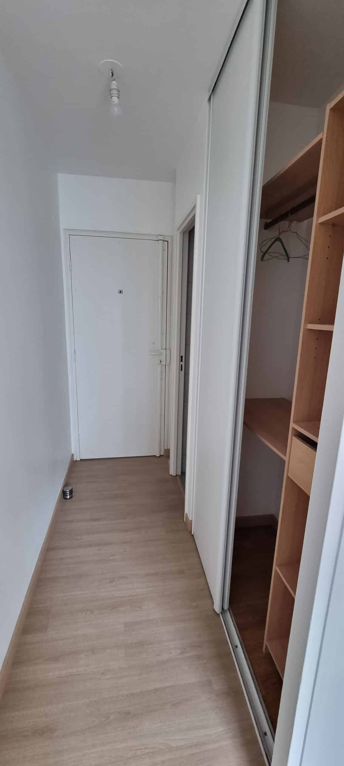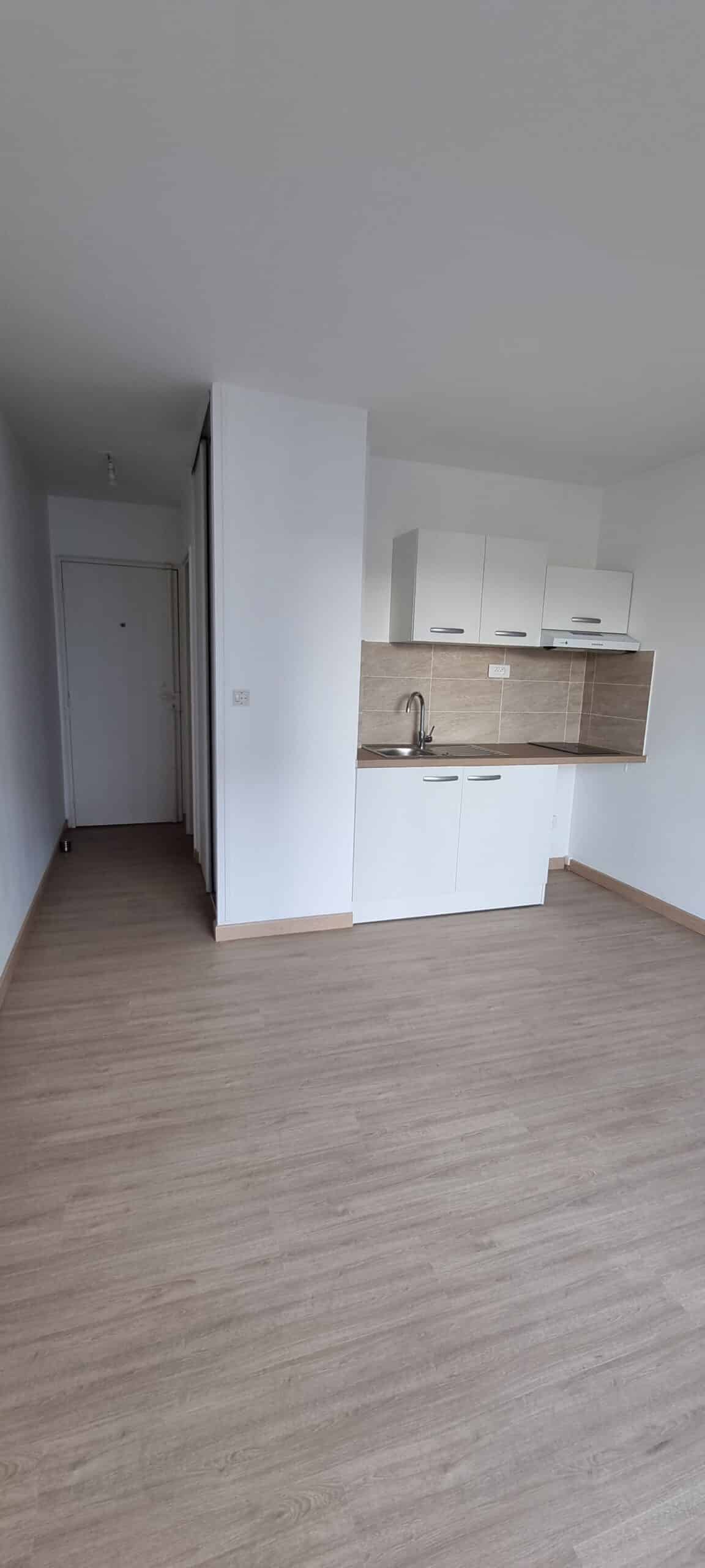 Studio parfaitement agencé (aucune perte d’espace) comprenant entrée avec placard intégré, une pièce à vivre avec cuisine, et salle d’eau / WC.